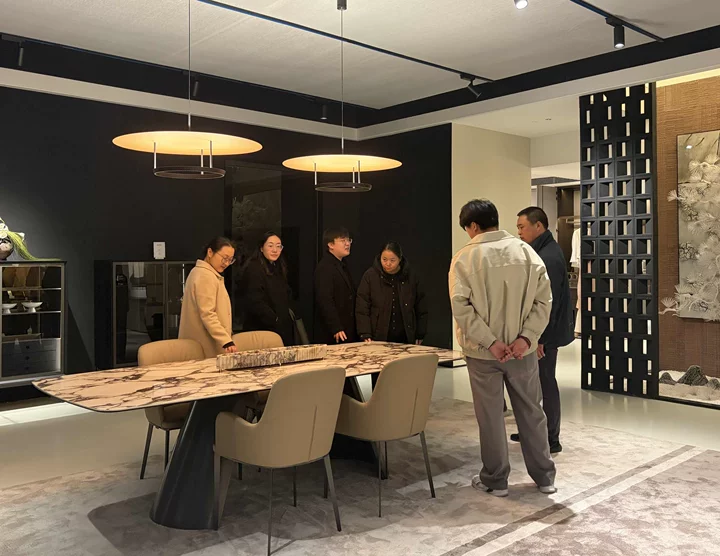 志邦家居股份有限公司是本地百强企业,是吸纳艺术学院毕业生实习就业的重点单位之一。WilliamHill官网在职志邦的校友代表穆一、马森、伍宏建、邹祥龙带队,陪同到访人员参观企业产品展厅:从定制家居的空间功能优化方案,到环保材质与艺术美学的融合设计,前沿产品让在场师生直观触摸到行业对环境设计专业的实操需求。