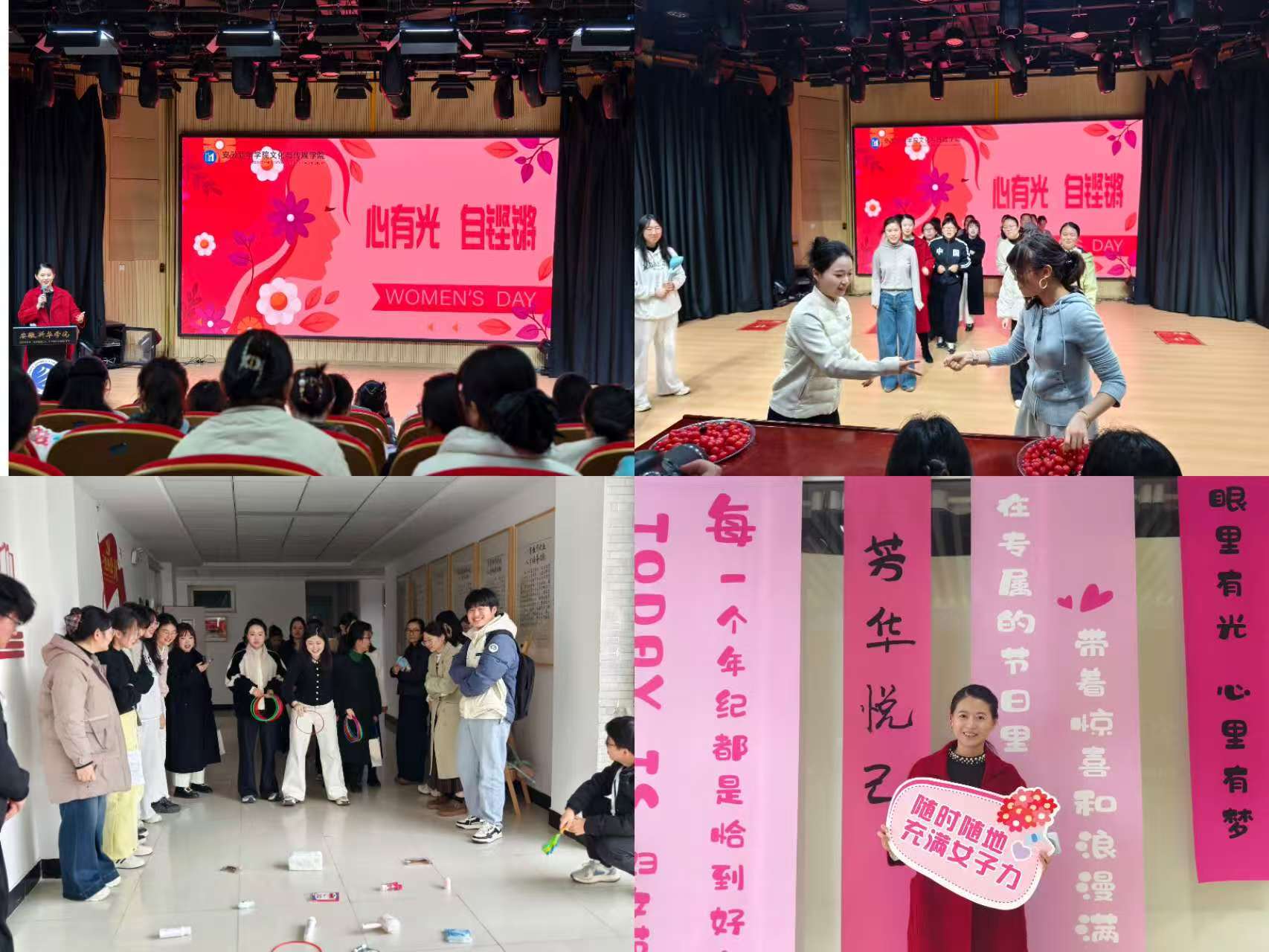 本网讯(通讯员:阳俊琍、张婉琦、张先彤)春风送暖,芳华绽放。为庆祝三八国际妇女节,彰显巾帼风采,凝聚奋进力量,2026年3月6日上午,文化与传媒学院在演播厅隆重举办“心有光·自铿锵”主题庆祝活动。学院全体管理人员与女教职工齐聚一堂,共赴这场温情满满的春日之约。