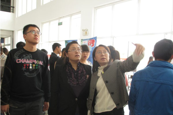 本网讯 (通讯员  杨兆亮)为进一步做好2014届毕业生就业工作,更好地拓宽毕业生就业渠道,搭建毕业生与用人单位的交流平台。10月16日,商学院在教学楼东大厅举办了本学期首场2014届毕业生与用人单位双选会。本次双选会共有20余家招聘单位,商学院1000余名同学踊跃参加。