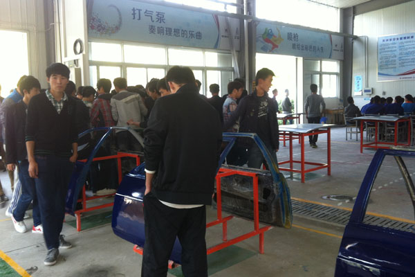 万通汽修学院教务处处长陈浮热情接待了同学们,他对大家的到来表示欢迎,并安排了4位专业教师进行现场讲解。老师带领同学们参观了各个实验实训室,介绍了设置内容和相关实训项目,如:整车实验、底盘实验、发动机拆装、汽车改装、汽车喷漆、车窗玻璃贴膜等。同学们联系理论知识对汽车的总体构造进行了深入认知,了解了汽车拆装、改造等多道工序流程,并饶有兴致地观看了汽车贴膜的全过程。在整个参观过程中,学生们紧紧围绕在老师周围,不时提出各种问题,老师们耐心地进行了解答,并就专业学习、就业等热点话题与大家进行了交流。