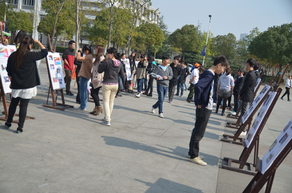 新华学院报讯(学生记者 方英豪)11月6日中午,由求美摄影协会和动漫学院联合举办的主题为“大一新生军训期间美丽瞬间”的摄影展在翰林广场举行。