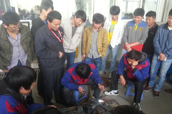 在机械自动化校内实习基地陈浮老师的引导下,同学们进入正在上课中的实训室。大家先后参观了钣金实训室、基础整车实训室、美容实训室、美容改装实训室、汽车商务与管理实训室、喷涂实训室及高管班实训室,相关负责人认真向大家介绍了每一个实训环节,并突出了每个环节强化实训技能训练内容;并回答了同学们提出的各类问题。
