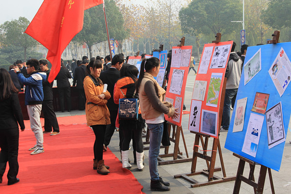 各二级学院学生会成员参加了开幕式,活动现场还举行了千人横幅签名活动。在开幕式之后的一个星期内,思政部老师们都将被邀请到翰林广场为同学们提供法律咨询服务。