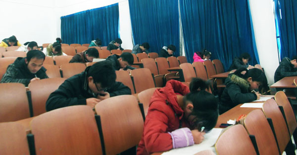 11日下午,考试开始,多位教师参与监考活动,考场秩序严谨、考风端正。参赛选手争分夺秒,仔细研读题目,认真答题。 比赛结束后,监考教师加班整理批改试卷,最终信息工程学院2012级计算机科学与技术(2)班王双双、电子通信工程学院2011级自动化(3)班李俊杰、信息工程学院2011级计算机科学与技术(2)班张维政获得前三名。