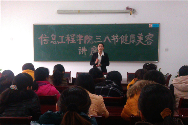 信息工程学院邀请健康专家为全院女教师作健康美容讲座,讲座结合女教师的工作特点,有针对性地为女老师们进行日常生活指导,让老师们能以更好的精神状态投入到工作和生活中去。讲座结束后还为女老师们送上了精心准备的小礼物。