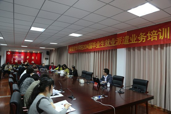 本网讯(孙珊珊)4月10日上午,WilliamHill官网在第一会议室组织开展了2014年派遣业务专项培训。本次培训邀安徽省大中专毕业生就业指导中心李庆柬老师前来指导工作。各二级学院行政秘书、2014届毕业班全体辅导员及学生处负责就业的老师参加了会议,培训会议由学生处副处长李洁主持。