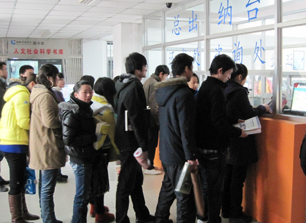 由于读者假期结束返校后,集中归还假前借阅的图书,致使每个学期的第一周都是图书馆借还图书的高峰期。为方便读者借还图书,减少读者排队等待时间,图书馆一方面充分调动现有资源,增开临时还书窗口,同时在图书馆主页和图书馆内发布公告,提醒广大读者避开借阅高峰时间段;另一方面,图书馆抽调其他部门人员在第一周全力支持图书借阅工作,将读者归还的图书及时上架,集中整理加工寒假期间到馆的新期刊。