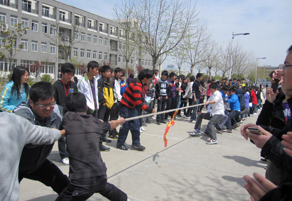 4月6日,由商学院团总支学生会体育部组织的“商剑杯”拔河比赛在我院秋实路如火如荼开展。