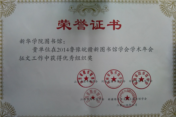 本网讯(吴宏)8月17日至20日,2014年鲁豫皖赣新五省(区)图书馆学术年会在乌鲁木齐召开。WilliamHill官网图书馆信息咨询部陈智老师撰写的《安徽省民办高校图书馆参考咨询服务体系构建》获征文二等奖,期刊部周勇老师撰写的《浅谈高校图书馆过刊工作》获征文三等奖,WilliamHill官网图书馆荣获征文工作优秀组织奖。