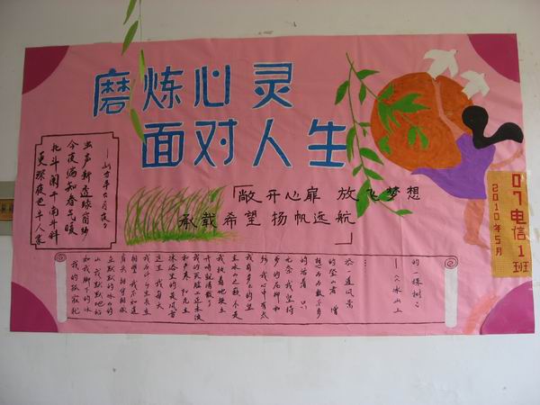 本次板报大赛是电院心理健康宣传月系列活动之一,目的在于将心理健康的概念深入到各班级,同时也是对于班级精神文明建设和校园文化建设的一次促进。电院行政院长对本次比赛的成果给予了充分肯定,并再次强调要以此为契机,加强班级心理健康宣传力度,加强班级文化建设,为广大师生提供健康和谐的学习环境。(电子通信工程学院)