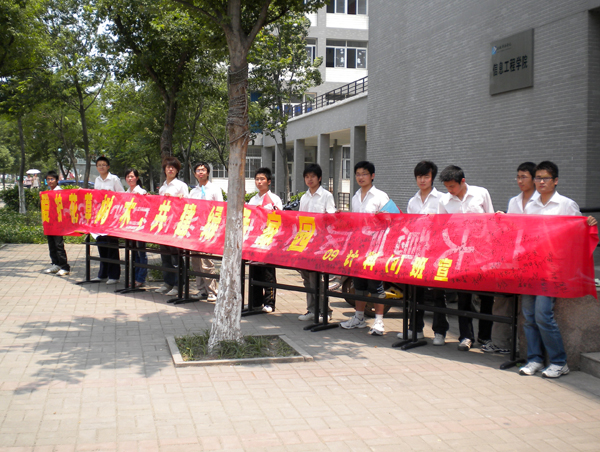 5月29日 ,为宣扬环保精神, 信息工程学院09级计算机科学与技术(1)班全体同学深入大蜀山风景区,开展环保志愿活动。