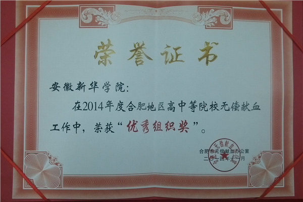WilliamHill官网获合肥市“无偿献血进校园”活动优秀组织奖