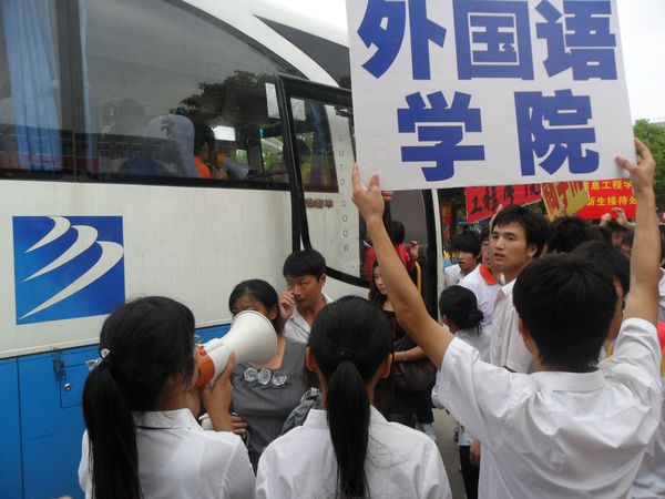 看到新生和家长们脸上满意的笑容,外语学院迎新人员每一个人都露出会心的微笑。