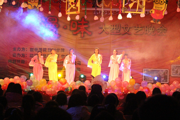 随后开始的歌伴舞《梦里花》凭借唯美的音乐、柔美的舞蹈赢得场下阵阵掌声,助理团带来的《雷人舞》展现了95后学子的激情和魅力。崔风波、李薇薇老师与同学们共同演绎的歌曲联唱将晚会推向第一个小高潮,台下的观众们不时发出阵阵欢呼。小品《刺秦》用幽默的语言、诙谐的表情,逗得现场观众捧腹不已。动漫学院学生会纪检部的舞蹈《向快乐出发》用肢体语言演绎了当代大学生热爱生活、快乐生活的精神风貌。艺术团的模特秀在带来视觉冲击的同时,将文明礼仪教育融入节目当中,寓教于乐,特点突出。