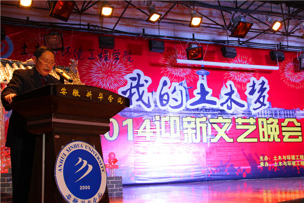 方达宪首先发表了热情洋溢的晚会开幕词,他对2014级学生的到来表示欢迎,希望他们能够树立高目标,立志奋发,用自己的青春朝气为明天的辉煌播下希望的种子,谱写人生的伟岸诗篇。并带大家一起回顾了土木与环境工程学院的历程及所获各项荣誉成果。