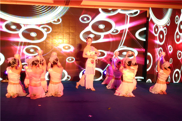 决赛现场,药学院文艺小组第13个节目出场,随着《茉莉幽香》音乐响起,穿着白色舞裙的姑娘们舞姿轻盈,款款而来,犹如含苞待放的茉莉。姑娘们舞蹈队形多变,时而聚拢,时而分散,在LED多彩变幻图案映衬下,更加美丽。赢得了场下观众的热烈掌声,最终以29.17分,荣获“高新区第二届舞蹈大赛总决赛”优秀奖。
