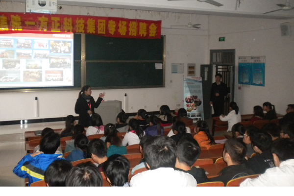 10月28日下午信息工程学院在3202教室举办了首场专场招聘会,2011届本、专科毕业生积极参加,方正科技集团股份有限公司招聘专员为同学们进行了详细的宣讲。