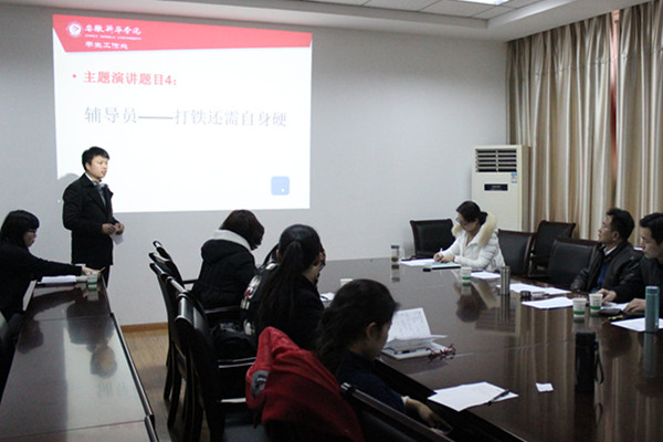 通过各个二级学院选拔推荐,共有12名辅导员参加本次选拔赛。比赛分为初赛和复赛两部分,内容包括主题演讲与案例分析,参赛选手现场抽题,即兴作答。