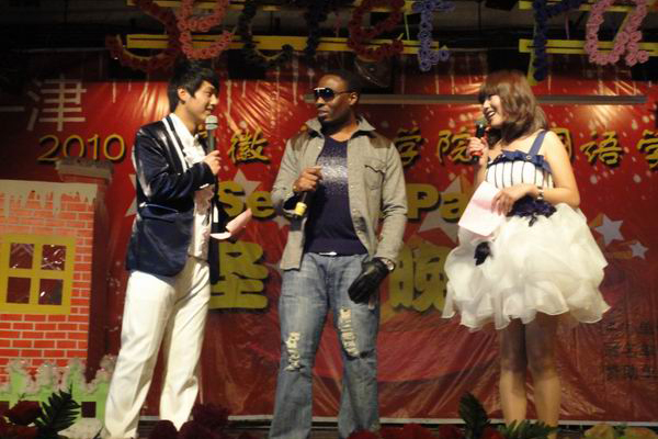 在两个多小时的精彩演出里,丰富多彩的节目让观众们目不暇接,晚会现场到处充溢着欢乐和幸福的味道。《If you seek Amy》《快乐出发》《歌舞青春》等炫丽多姿的舞蹈划出优美华丽的弧线;《君か好きたと叫ひたい》《海阔天空》等风格多变的歌曲唱出圣诞华美的篇章;《王子争夺战》等幽默风趣的话剧和新颖别致的相声演出诙谐欢快的滋味;《洞庭新歌》《青花瓷》等优雅的乐器演奏奏出婉转悠扬的音符。多才多艺的老师们也在台上将激情挥洒了一番,由彭洪磊老师和芮萍老师深情合唱的《在我生命中的每一天》赢得了满场喝彩。外教Julius热情奔放的歌舞更让整场晚会掀起了高潮。整个会场就这样一直沉浸在这祥和美好的氛围中。精彩节目、互动游戏一个接一个,无不将大学生的活力展现得淋漓尽致。在主持人娓娓的祝福里,在观众们意犹未尽的微笑和雷鸣般的掌声里,这样一场华丽的视听盛宴完美地落下帷幕。