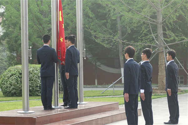 清晨7点整,全体人员统一着装,集合完毕,国旗护卫队迈着整齐的步伐,护送国旗入场。伴随着嘹亮的国歌声,五星红旗在朝阳下冉冉升起。随后,同学们在红旗下庄严宣誓。