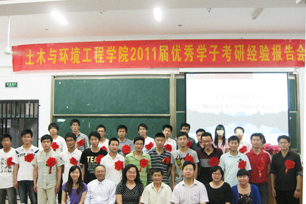 5月18日下午,土木与环境工程学院举办2011届优秀学子考研经验报告会。学院副院长袁种宝、招生就业办主任吴恒修、人事处处长杨成华、督导督察处处长吴宏东,土木与环境工程学院院长方达宪、教学副院长蒋亚龙出席了报告会。土木与环境工程学院全体教师、2011届25名考研优秀学子及2012届部分有考研意向的同学参加了报告会。