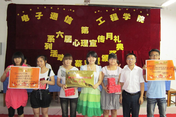 电院本届心理健康宣传月活动历时36天,先后举行了心理情景剧大赛、非常三缺一心理知识大赛、心理征文大赛、心理板报评比大赛、心灵短信征集、笑脸征集、心理影片观摩、主题班会、户外签名、成果展示等十项系列活动,采取班级积分制,评选出集体一二三等奖和单项奖。这些活动内容丰富,组织有序,其中心理知识大赛作为本届活动的新增项目,将知识性和趣味性融为一体,受到同学们的大力支持和欢迎。2008级通信工程1班的校园心理剧《毕业时刻》作为电院推荐剧目参加学院第二届校园心理情景剧大赛,荣获一等奖!