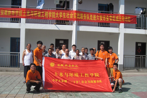 为积极响应团中央、团省委关于暑期大学生文化、科技、卫生“三下乡”活动的号召,促进大学生了解社会,增长实干,锻炼毅力,增强社会责任感。通过全国“三下乡”对接平台,在共青团六安市金安区委员会的帮助下,7月1日起,土木与环境工程学院“三下乡”社会实践服务队抵达六安市金安区城北乡敬老院,进行了为期4天的社会实践活动。
