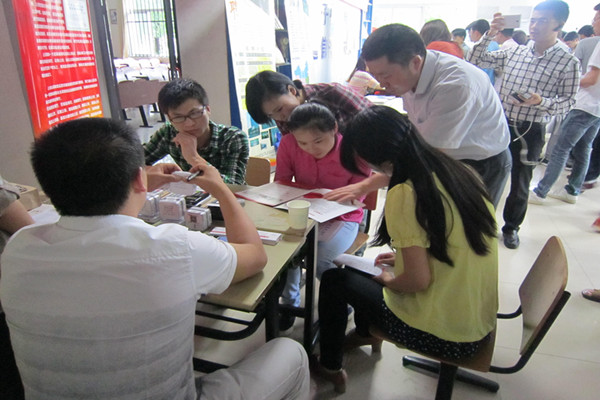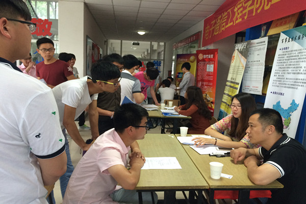 本网讯(通讯员:储金华)为促进2015届毕业生充分就业, 解决2016届专科毕业生顶岗实习,6月17日下午,电子通信工程学院举办了2015年夏季招聘会。本次招聘会邀请了安徽四创电子股份有限公司、合肥长虹实业有限公司等7家知名企业,提供了电子、自动化类专业技术岗位150余个以及部分行政、营销类综合性岗位,吸引了近200余名毕业生前来应聘。