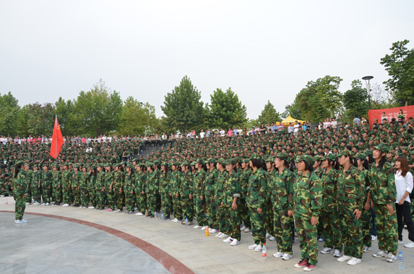 在激昂的军歌伴奏下,土木与环境工程学院2011级新生穿着整洁的军装,迈着整齐的步伐走进活动现场,分方阵就座,场面十分壮观。