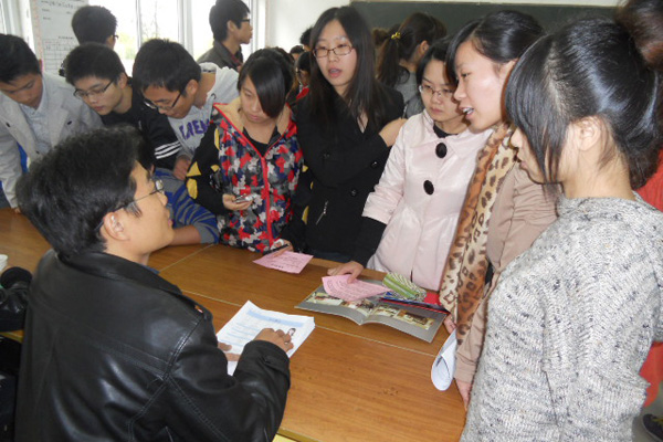 药学院毕业班辅导员、行政秘书、实习主管和招就办的老师也亲临现场指导学生。由于是第一次参加专业型的招聘会,所以很多人在投什么样的岗位、留在本省还是去外地等问题上摇摆不定。老师们现场谈话,一对一地结合学生情况,耐心地帮他们分析利弊,教他们如何取舍,从而最终确定。