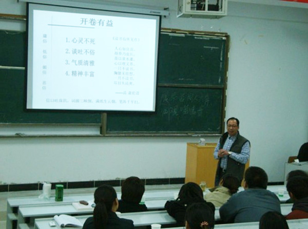 为了帮助一年级新生明确学习目的,树立学习目标,近期,国际教育学院邀请国学研究院院长姚根友为全体2010级、2011级学生开设了一场 “谈读书”的专题讲座。