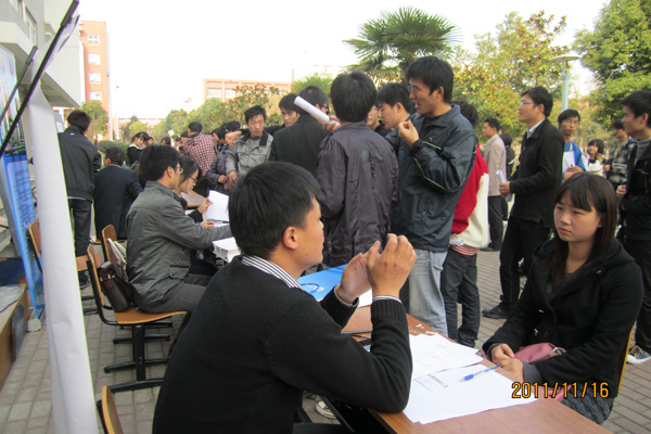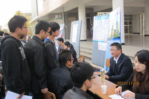 11月16日下午,包括安徽城市职业学院等九家企事业单位汇聚在文化与新闻传播学院楼下,进行2012届毕业生专场招聘会,来自文化与新闻传播学院和其他兄弟院系500余名学生参加了招聘会。