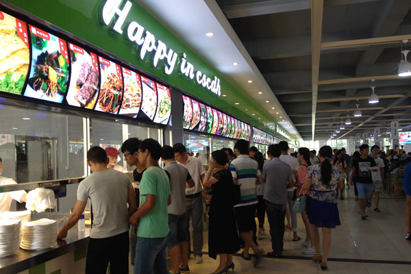 改造升级的中快餐厅,窗明几净,布局新颖,100余块亚克力灯箱牌将供餐窗口装点的温馨而明亮,再配以式样别致的就餐桌椅和餐盘,不仅提升了整个餐厅的档次,更彰显出校园餐厅的时尚与活力。同时,为做好供餐保障工作,后堂加工烹饪区及风味小吃窗口也进行了硬件的升级与改造,包括地砖的重新铺设、烹饪灶具的购置、操作间及小吃供应窗口的独立分隔、冷库间的增设、餐具消毒柜的更换等。另外,在高校食堂“明厨亮灶”的号召与要求下,为实现后堂区域的阳光操作和透明化管理,食堂还安装了视频监控,将食品制作及餐具清洗消毒等过程,通过视频信号实时传输到就餐大厅的显示屏上,让广大师生与后堂“零距离接触”,吃得放心、吃得安心。
