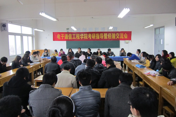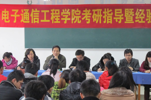 为激发同学们学习热情,营造良好的考研氛围,11月30日,电子通信工程学院举办了考研指导暨经验交流会,近百名参加2012年考研的同学参加交流会。出席交流会的有电子通信工程学院院长江谷传,行政副院长操宏华,院长助理及各系副主任和教师代表。