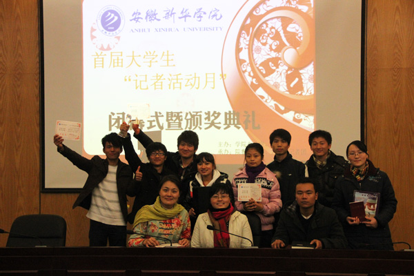 据了解,本次记者月活动于11月8日正式启动,活动内容包括“情满华园”征文比赛、“美在华园”书法摄影比赛、百科知识竞赛、书法摄影作品展等。2009级新闻学(2)班谭森亮的作品《三下乡》在“美在华园”摄影比赛中喜获一等奖。《三下乡》描述了青年志愿者在韩圩小学支教时温馨动人的场面。2010级新闻学(1)班袁立廷也在摄影比赛中凭借拍摄胡琴湖畔的《两只天鹅》获得了三等奖。在“情满华园”征文比赛中,文传师生更是大展拳脚。2010级新闻采编与制作(1)班谢小芳和2010级新闻学(1)班刘娜分别获得了二等奖与三等奖,文化与新闻传播学院教师王群芳、慕启则被获得特别贡献奖。