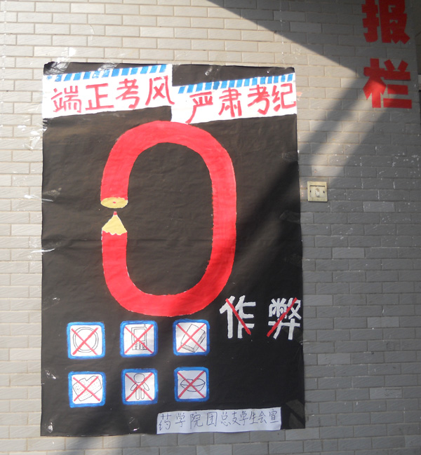 为了进一步加强考风考纪建设,倡导广大同学认真复习备考、以诚实诚信的态度检验自己的学习成果,牢固树立诚信光荣、失信可耻的道德观念,在全院形成浓厚的复习迎考氛围。药学院近期举行了以“认真复习,诚信应考,再创佳绩”为主题的考风考纪系列活动。