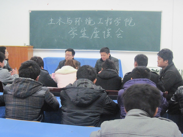 为切实有效地做好大学生的思想教育工作,引导大学生健康成长,为新学期学生工作打下良好的基础。2月28日和29日,土木与环境工程学院分别召开两次新学期学生思想动态座谈会,就新年来广大学生们思想动态和关心的热点问题进行了深入的交流。土木与环境工程学院行政副院长计勇、学管秘书、教师代表、各年级学生代表、团总支与学生会代表和班级理事会全体成员参加了会议。