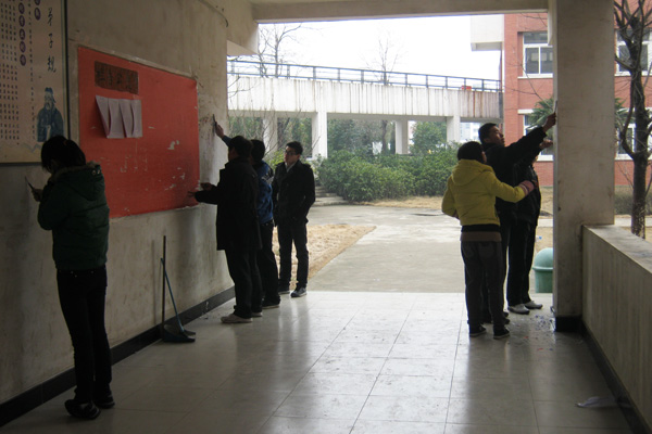 在做好前期宣传、动员、准备的同时, 3月5日,土木与环境工程学院组织了一次“美化教学环境,清除卫生死角”的学雷锋活动。同学们积极配合老师,将墙壁上的“牛皮癣”进行清除,将一些积满灰尘的玻璃擦得干净明亮,还对教学楼原有的标语、装饰画等进行了检查并及时修复、更新。在雷锋精神的感召下,同学们热情高涨,在工作的过程中没有任何懈怠,努力以高标准来完成各项工作,学生干部更是带头出现了困难的地方,清理之后的教学楼焕然一新。
