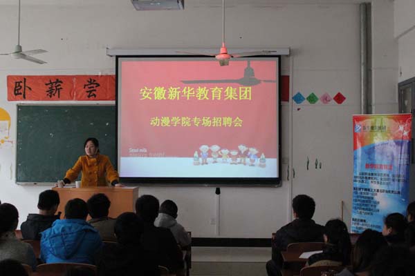 为提升就业质量,加大就业力度。3月21日下午,动漫学院举办安徽新华教育集团专场招聘会,为新华职业教育选送动漫类人才。