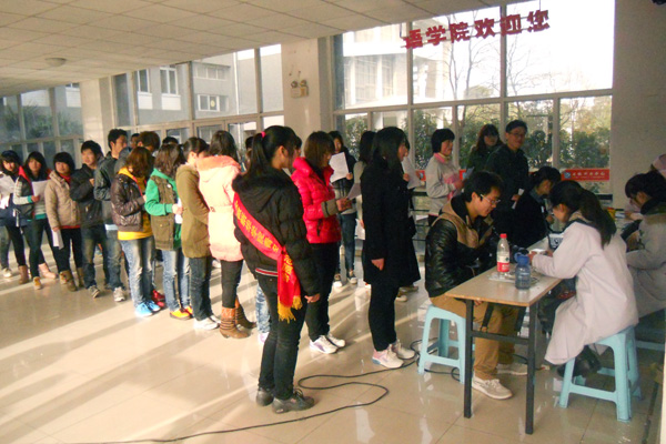 献血现场人流不断,秩序井然,有条不紊。咨询处,青年志愿者为来往人群解答献血的问题,提醒献血时的注意事项,鼓励同学们为社会公益事业出一份力。体检处,血液中心的医护人员认真为等待献血的同学们做各项身体检查,保证参加的同学符合献血标准。献血车上,医护人员温暖体贴,在学生紧张之时,亲切地与他们交谈,以减轻同学们的心理压力。