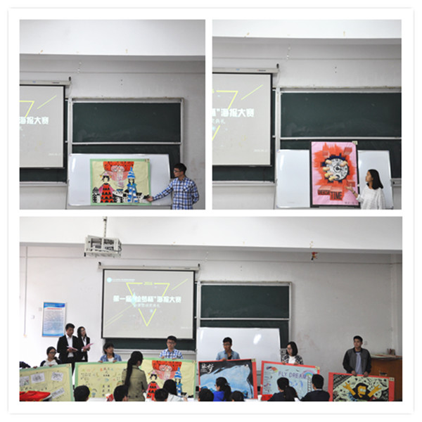 决赛中各队首先阐述各自团队所绘海报的主题,评委老师从主题、创意、构图三个方面进行评分。最终结果由评委打分与前期线下同学投票数结合产生。2014级工业设计1班海报“Cherish Time”以最高分夺得此次大赛的一等奖,2015级风景园林1班“锦绣年华”与“流年落华处”获得二等奖,2014级土木工程建工1班的“Love N Peace N Rock”、2015级土木工程建工四班“绘梦”和2015级土木工程道桥1班“有梦有青春”获得三等奖。2014级风景园林1班的“我的园林我的风景”以其独特的创意摘得最佳创意奖,2015级土木道桥1班的“有梦有青春”获得线下最高投票数,摘得最佳人气奖。