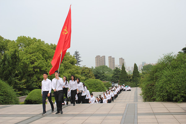 5月4日下午,同学们统一着装,排着整齐的队伍来到了蜀山烈士陵园。团员们在团旗面前整齐列队,高举右手,用洪亮的声音重新宣读了入团誓词。在庄严的誓词声中,大家再次感受了令人激动的时刻,提醒自己履行曾经许下的誓言。