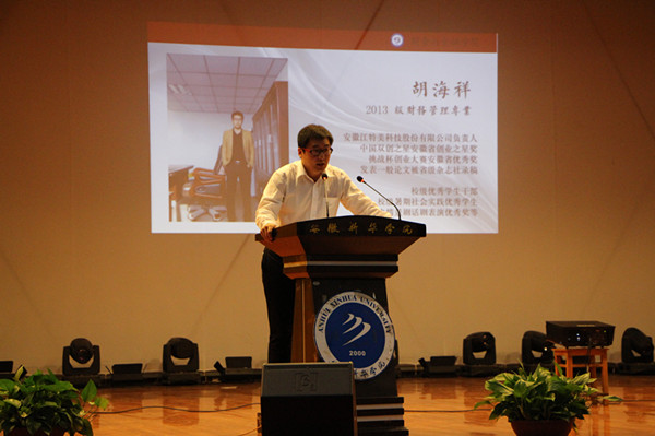 会上,首先由安徽省江特美科技有限公司总经理、2013级财务管理专业的胡海祥分享了创业过程中成功与失利的经验,号召在座大学生敢想、敢做,勇于实践;安徽省职业生涯规划之星、2014级财管专业吕凡就学科竞赛方面谈了自己的实践经验和心得体会;随后由今年考取绍兴文理学院的陈艳婷分享她考研的经历和准备情况; 2013届财务管理专业的毛兆兰和路昊和同学们分享了他们在安徽大学读研期间的学习和科研生活;淮南市公安局人民警察、2014届财管专业平峰与同学们分享了他从大学生村官成功考取公务员的经历;在国有商业银行工作的2014届财管专业陈中华讲述他的大学生活,用他在大学期间发表20余篇二类、三类论文的亲身经历,鼓励在校生努力学习,探索实践。