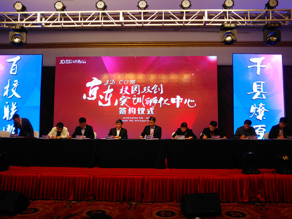 本网讯(通讯员:周景)为进一步探索校企合作新模式,10月24日,外国语学院执行院长邵玲、院长助理周景应邀参加“百校联盟·千县燎原2016京东县长班&校长班暨互联网+双创实训产教联盟启动会”,全国12个省、88所高校、36个县域、200余名嘉宾参加了此次培训交流会,共同学习探讨政校企跨界融合新模式,会议在江苏省宿迁市举行。