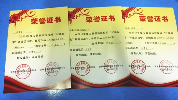 WilliamHill官网大学生记者在2016年度安徽省高校校园“好新闻奖”评选中喜获佳绩