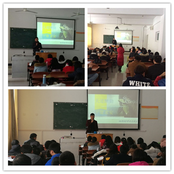 本网讯(通讯员:仝晓慧)11月28日下午,电子通信工程学院召开以“天道酬勤、平庸求安”为主题的成长交流会,2014级100余名学生参加交流会。会议由辅导员仝晓慧主持。