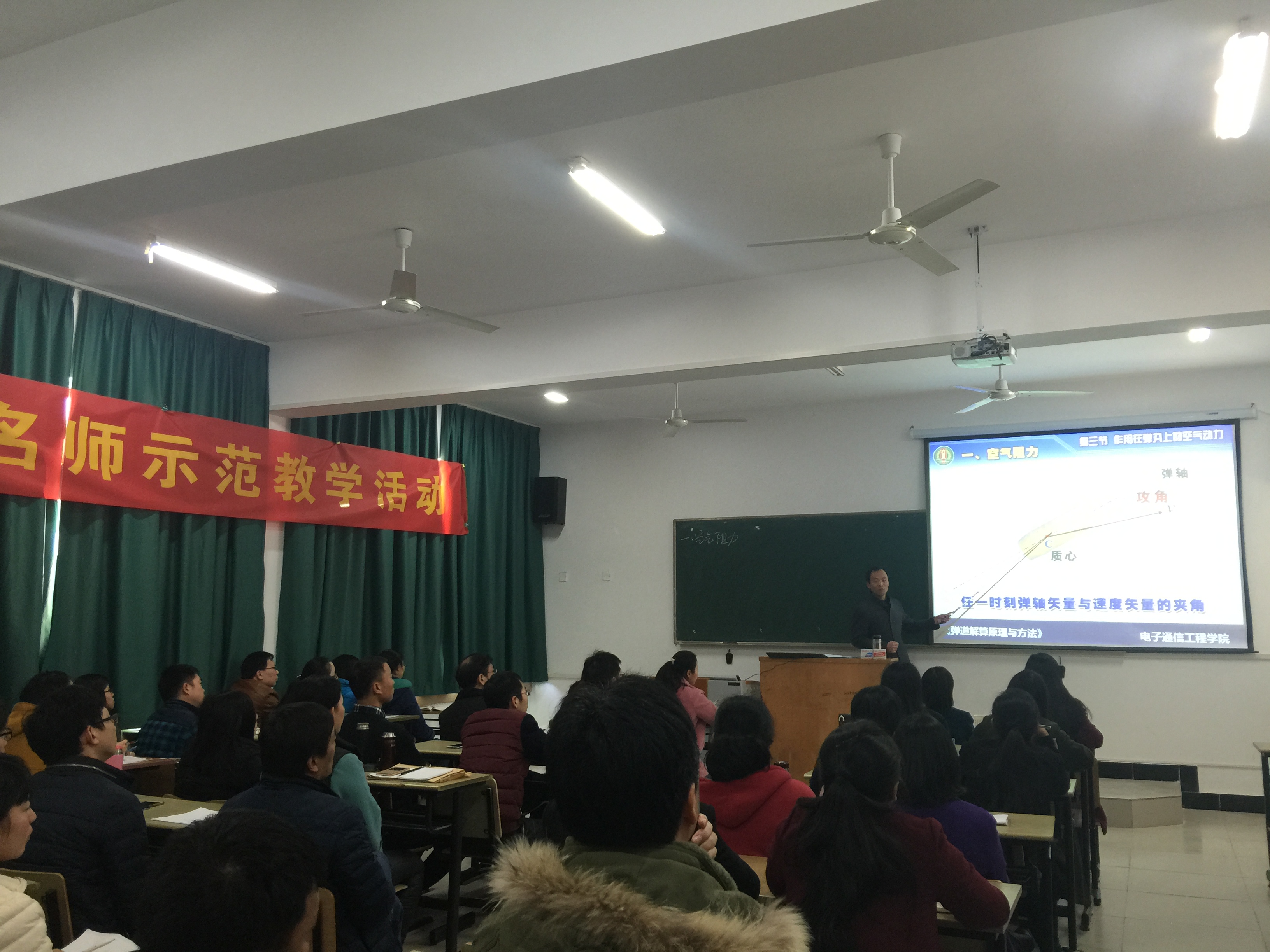 本网讯(通讯员:李红星)为充分发挥优秀教师课堂教学示范作用,加强教师间的交流学习,助力青年教师成长,12月2日下午,电子通信工程学院联合教务处开展2016年度第二场名师示范教学活动,舒敬荣副教授用曾获省部级教学观摩竞赛一等奖的课程“作用在弹丸上的空气动力”为在场教师进行了教学示范。