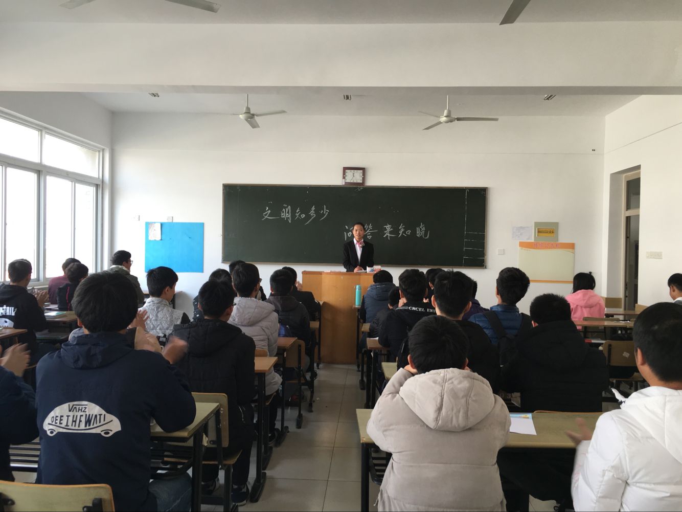 本网讯(通讯员:陈晓芳)为增强学生的文明素质,促进校园文明建设,结合校园“文明修身月”活动, 12月9日,电子通信工程学院举办“文明知多少,问答来知晓”文明知识宣传活动。2016级自动化专业100余名学生参加活动。