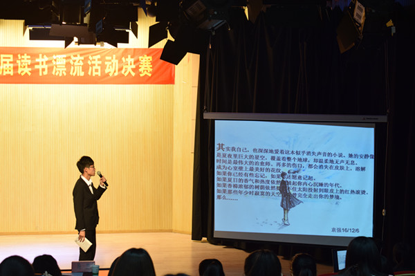 本次比赛共分为读书感悟、读书回忆、图书交换、评委点评和颁发证书5个环节。读书感悟环节,来自7个二级学院共15位选手分别讲述了自己阅读的感悟,优美的语言、炙热的情感引起了现场观众的共鸣,赢得了评委和观众的阵阵掌声;读书回忆环节,参赛选手通过演讲的形式带领观众一起走进作者的内心世界,感受故事情节的波澜起伏、情感的激情跌宕;图书交换环节,现场部分学生互相交换自己手中的图书,以书本会友,流动的是书本,分享的是知识,传递的是快乐,提升的是修养。