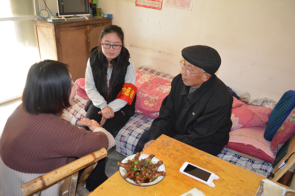 敬老服务小分队来到老人家里,有的陪老人聊天,有的帮忙打扫卫生,有的更撸起袖子一展厨艺。同学们陪老人拉起了家常,大家你一言我一语地亲切交流,嘘寒问暖,倾听老人心声。吃着同学们做的可口饭菜,听着关心的话语,70岁的李奶奶留下了感动的泪水,同学们的关怀备至、细心体贴,舒展了老人的脸庞,温暖了老人的心。慰问结束之时,大家与老人们亲切合影留念,并依依不舍地挥手告别。